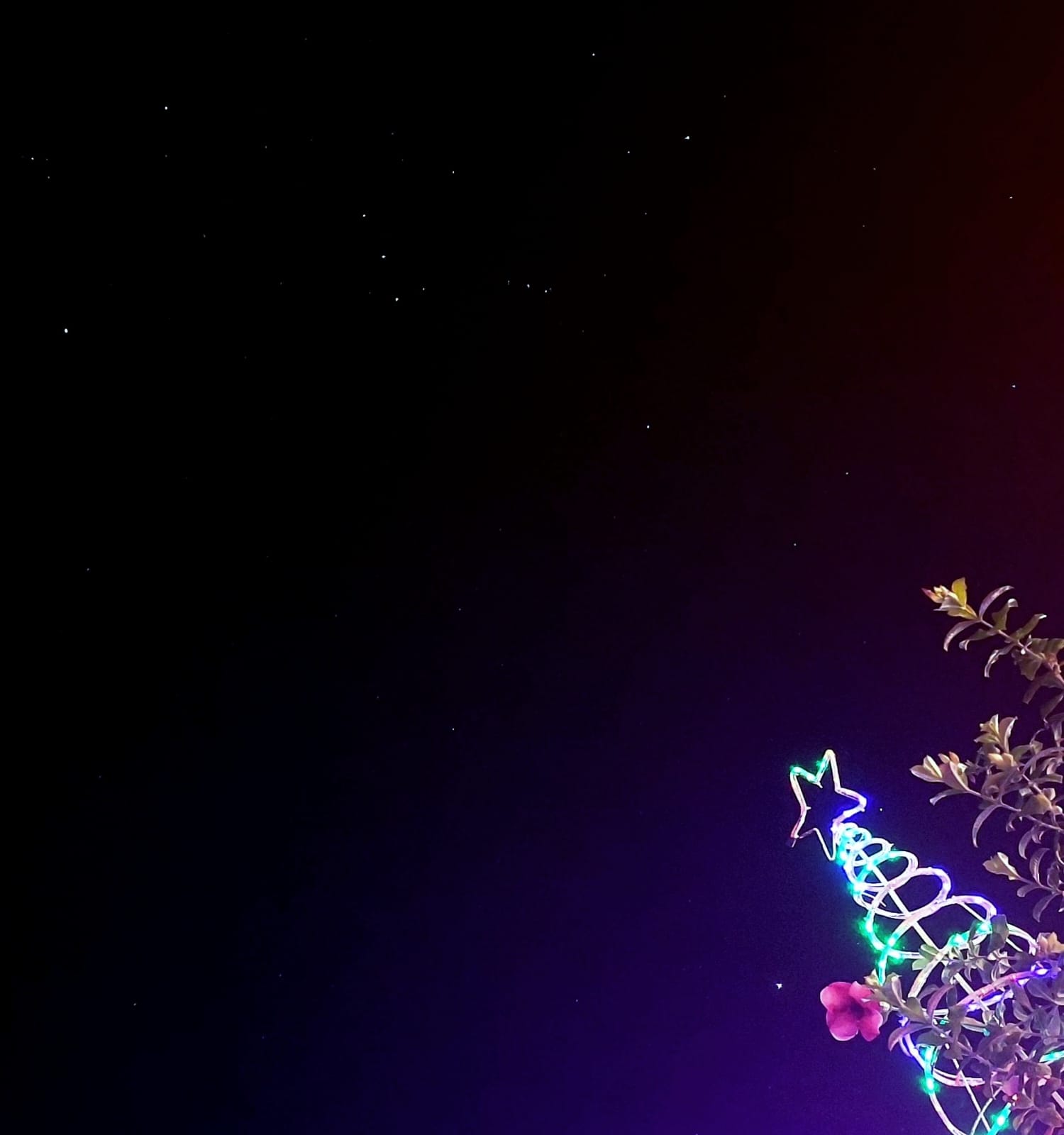 Magnífica estampa navideña al final de la tierra peninsular, visibles las estrellas de las alas Rigel, Saiph, Betelgeuse y Bellatrix. Y las estrellas del cuerpo de la mariposa: Mintaka, Alnilam y Alnitak.