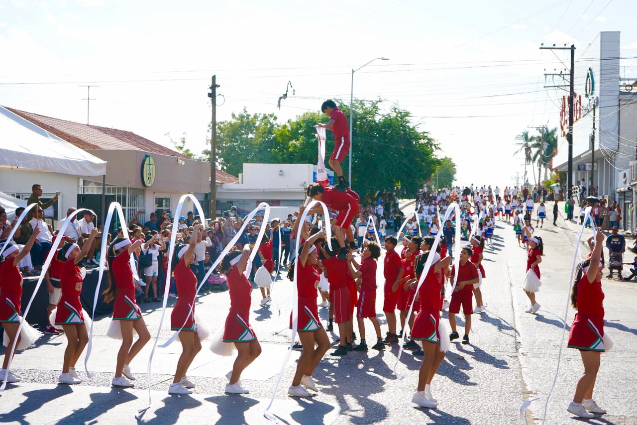 El desfile inició con la banda de guerra y escolta del CBTIS 256, dando paso a los contingentes escolares del Centro de Atención Múltiple “Profr. Juan Pedrín Castillo”, así como de las primarias Amelia Wilkes, Ramón Green Álvarez, Efraín Ceseña Ceseña, Ildefonso Green Ceseña, Jesús Castro Agúndez y el Colegio Leonardo Da Vinci. En nivel secundaria participaron la Técnica No. 18 Moisés Sáenz Garza, Secundaria General No. 8, Técnica No. 16, Raúl Enrique Guerrero Montaño y Técnica No. 19.