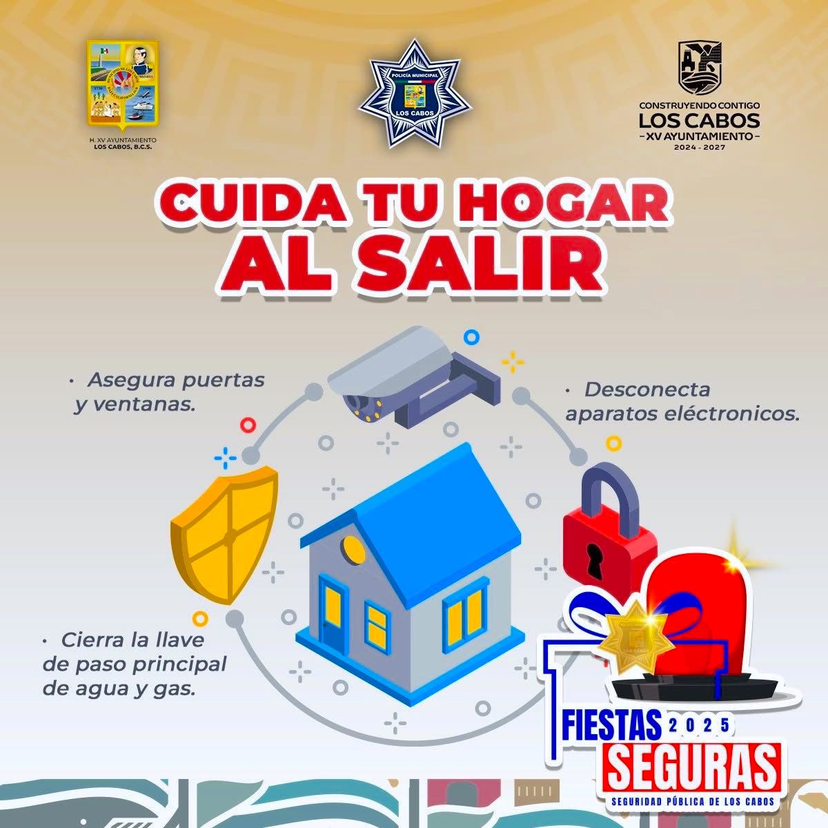 Los Cabos, Baja California Sur.– Con la finalidad de salvaguardar la integridad de la comunidad durante las celebraciones decembrinas, el XV Ayuntamiento de Los Cabos, a través de la Dirección General de Seguridad Pública, Policía Preventiva y Tránsito Municipal, emitió una serie de recomendaciones preventivas dirigidas a la población del municipio.