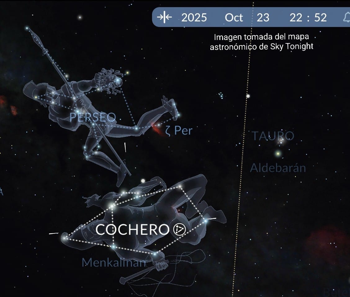 A primera vista Mirfak, la estrella más brillante de Perseo, y Capella, de Cochero.