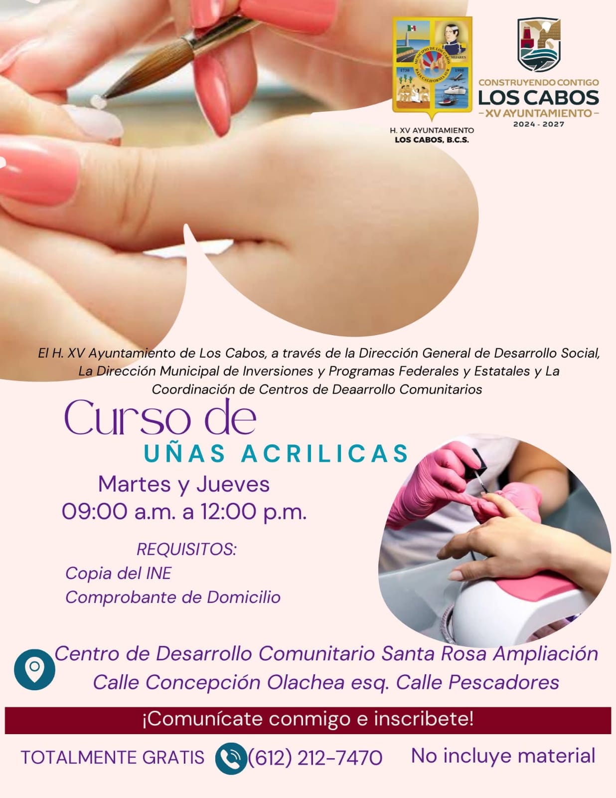 Los Cabos, Baja California Sur.- Con el propósito de fortalecer la economía local, impulsar el autoempleo y brindar herramientas para el desarrollo comunitario, el XV Ayuntamiento de Los Cabos, a través de la Dirección General de Desarrollo Social y la Dirección Municipal de Inversiones y Programas Federales y Estatales, invita a la ciudadanía a participar en los cursos gratuitos de capacitación que iniciarán el próximo jueves 08 de enero de 2026.