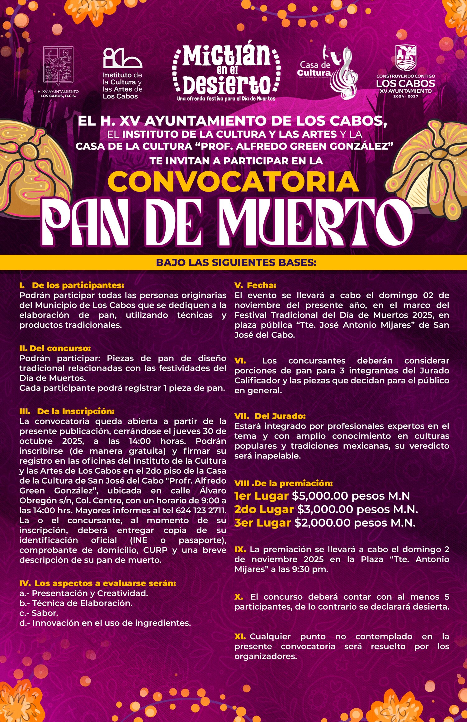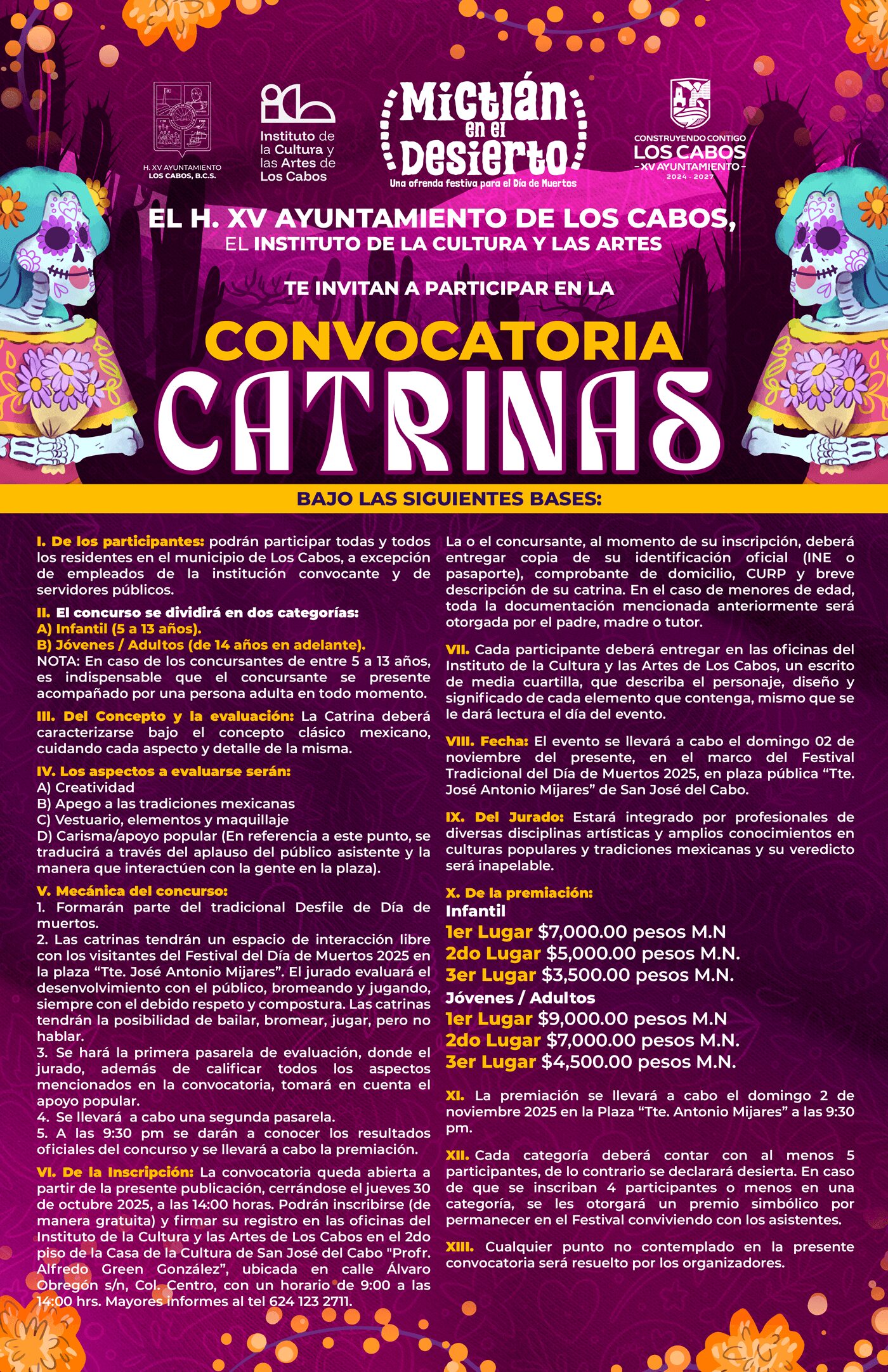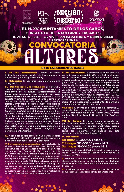 convocatorias de altares y catrinas, mientras que en Cabo San Lucas se llevará a cabo la