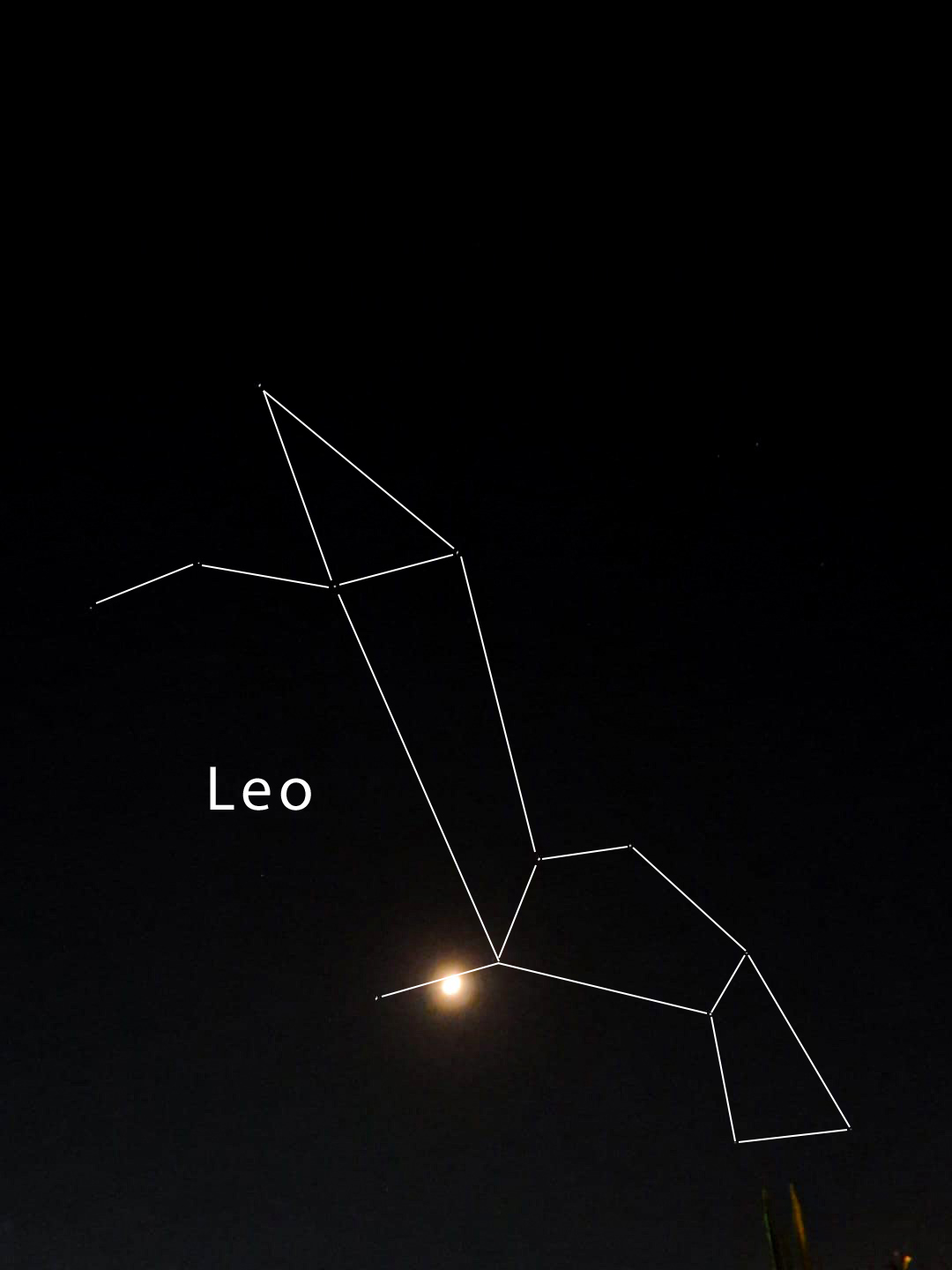 Se veía magnífica la estampa de la estrella Regulus en la pata derecha de Leo y arriba en diagonal la Luna.