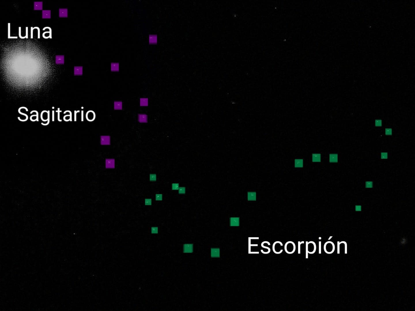 Pero, la estampa se hace más bella: la Luna se encuentra en Sagitario. A un lado la constelación Escorpión.