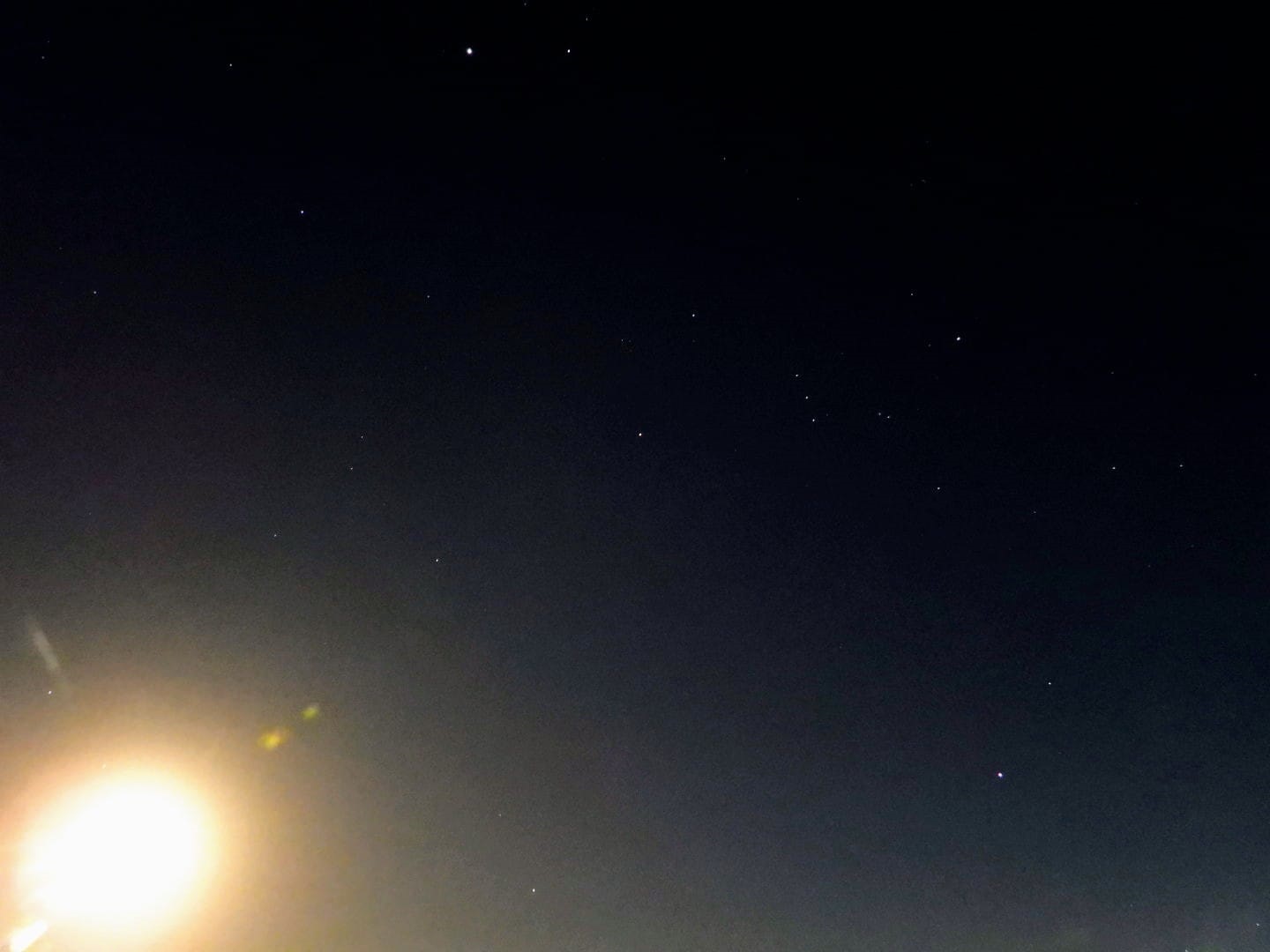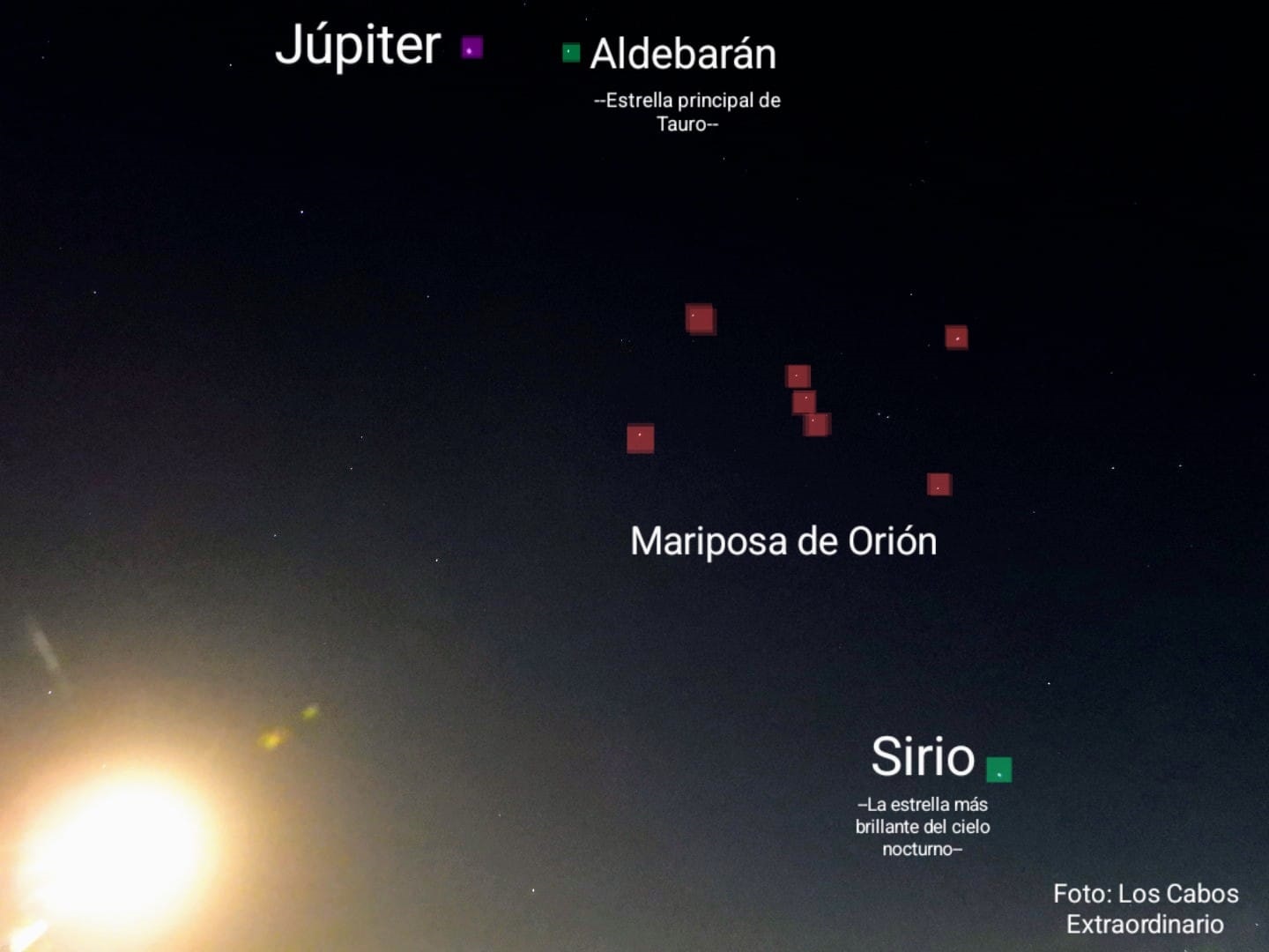 La Luna lobo saludando por igual a los planetas visibles: Júpiter, Marte, Saturno y Venus; a las gigantonas estrellas también visibles Sirio, Canopus, Aldebarán, Póllux, Capella. Incluso, con el saludo mismo a la Mariposa de Orión, visible, por entre el cielo nocturno de Cabo San Lucas.