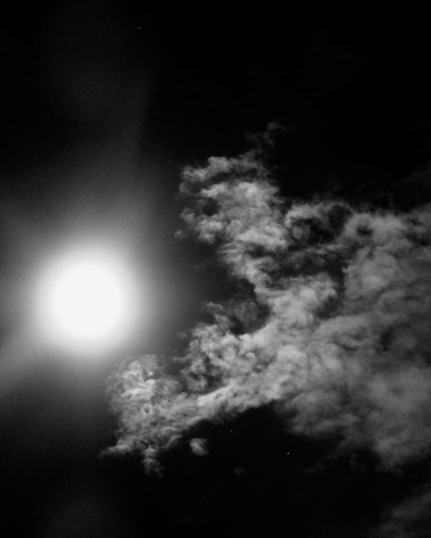 Fechas, en el cielo nocturno de Cabo San Lucas, había tenido la sorpresiva imagen: saliendo por entre las nubes el Lobo que se quería comer a la Luna llena. Silencio. Sin aullidos. Obturé. En el registro fotográfico el testimonio de la fauce del gigantesco lobo abriéndose sobre la luna.