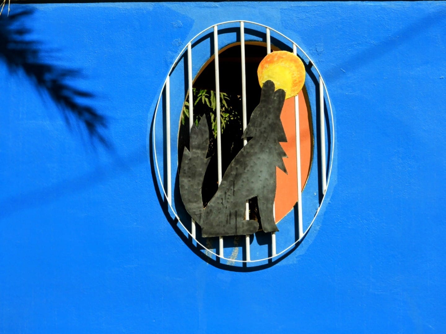 Caminas hacia la gran playa de Los Barriles y por entre la vialidad resalta sobre la pared residencial el trazo del Lobo y de la Luna llena; caminas por un parque de Vancouver y por igual la estampa del Lobo y la Luna llena.
