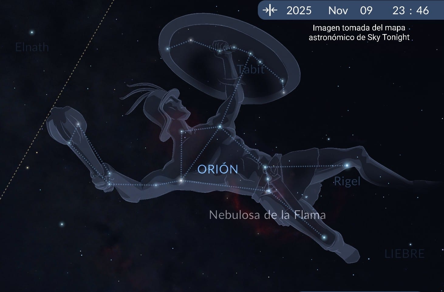 Imagen tomada del mapa de Sky Tonight.