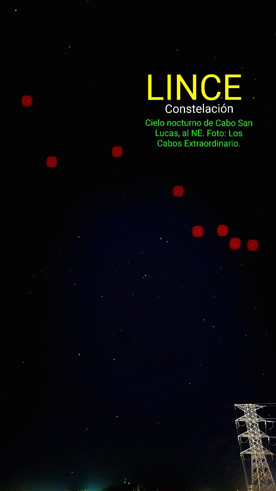 Constelación Lince al NE de Cabo San Lucas, en primer plano torre 003 de la CFE. Foto: Los Cabos Extraordinario.