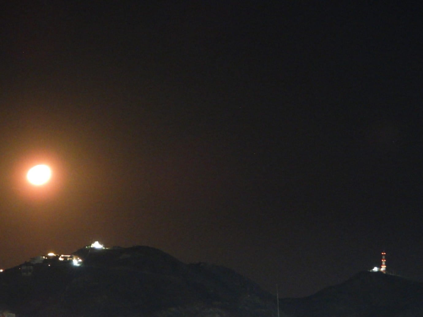 Al fondo la serranía oscura y en el primer cuadro el lucerío de la ciudad portuaria sanluqueña. La Luna en el paisaje. Horas antes la constelación Sagitario fotografiada con la Luna por igual la constelación Escorpión y cuyas capturas fotográficas se compartirán en otras ediciones de este sitio de comunicación de Los Cabos Extraordinario.