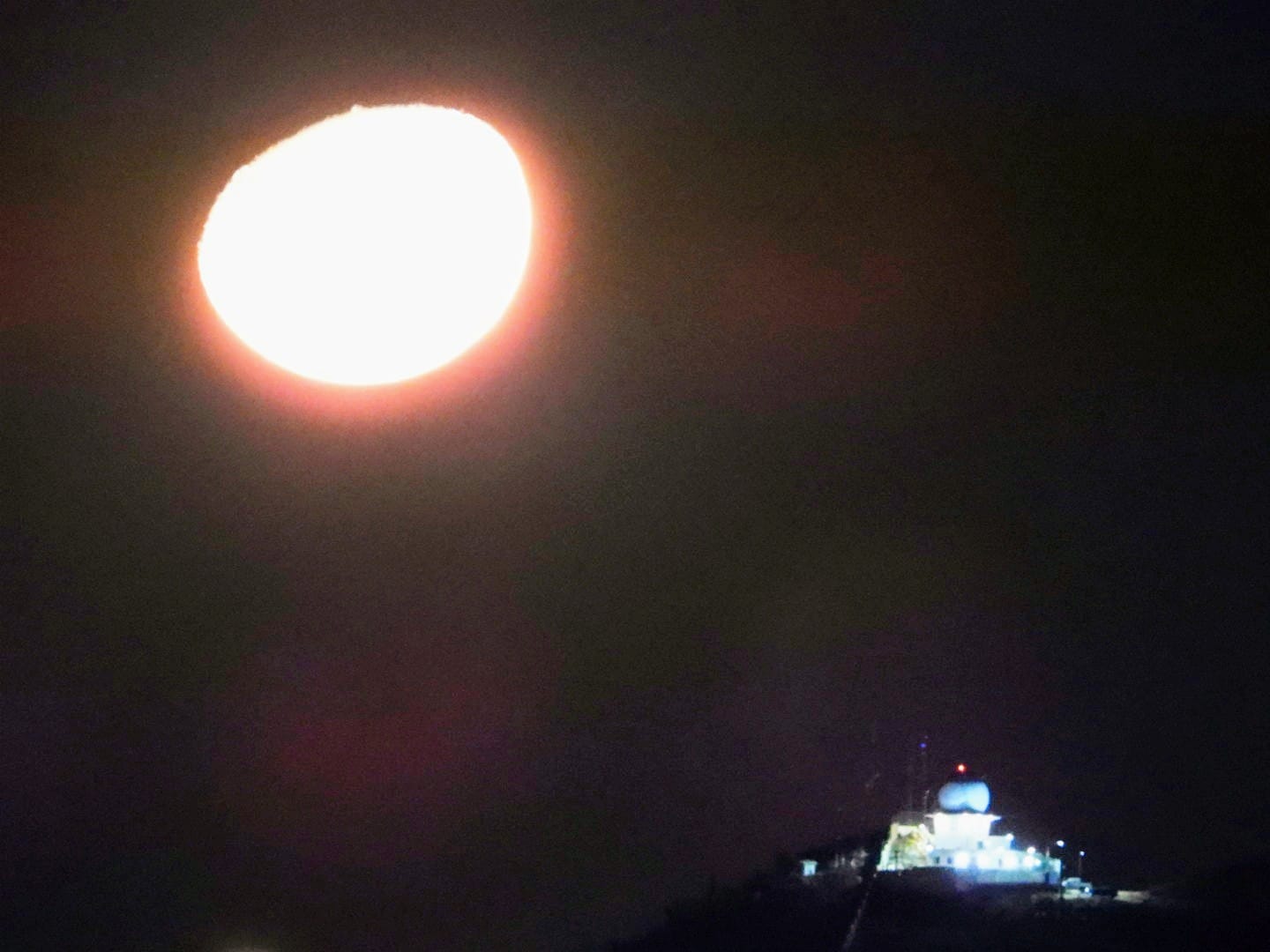 El objetivo en esta ocasión: captar a la Luna descendiendo sobre la estación metereológica. Sin nuberío. Y la jornada nocturna se prestaría para ello el martes.